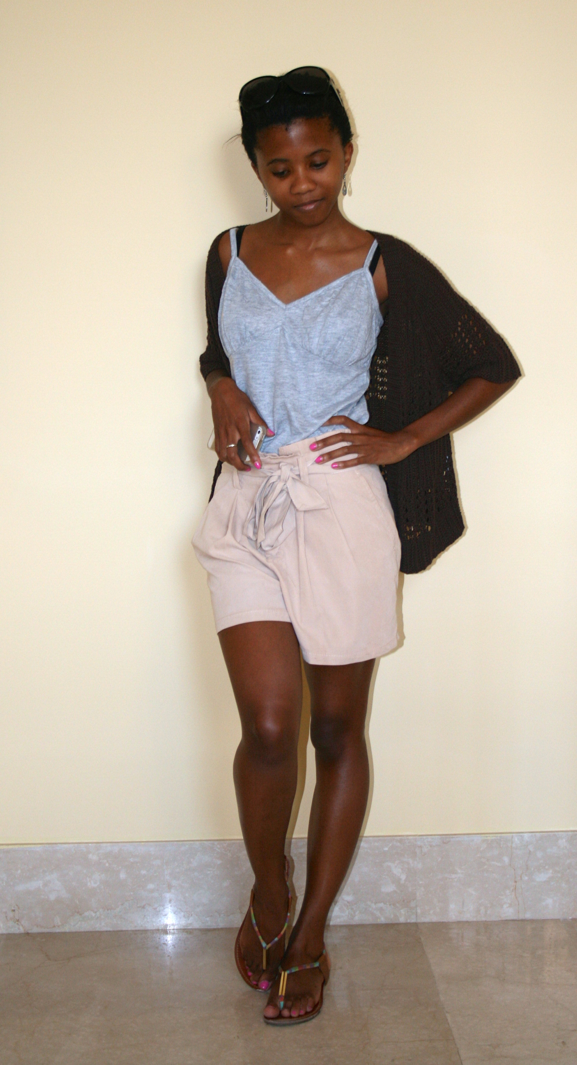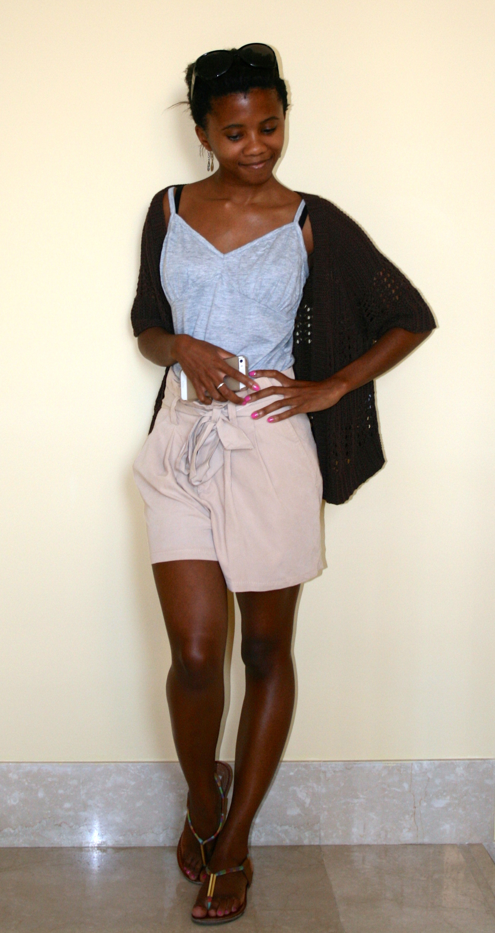 Yesterday I decided to go for a very casual chic outfit. I decided to pair my favourite shorts with a grey top and a cropped cardigan. It’s the kind of outfit that I really enjoy wearing on hot days. I think that the shorts add a chicness to the outfit because of the cute tie around belt and the structure that they have. I bought them a few years ago and I have a patterned pair. There was also a brown suede pair in my size that I absolutely adored, but never bought. boo!! I’m attempting to update my blog daily so stay tuned for more outfit posts in the future.