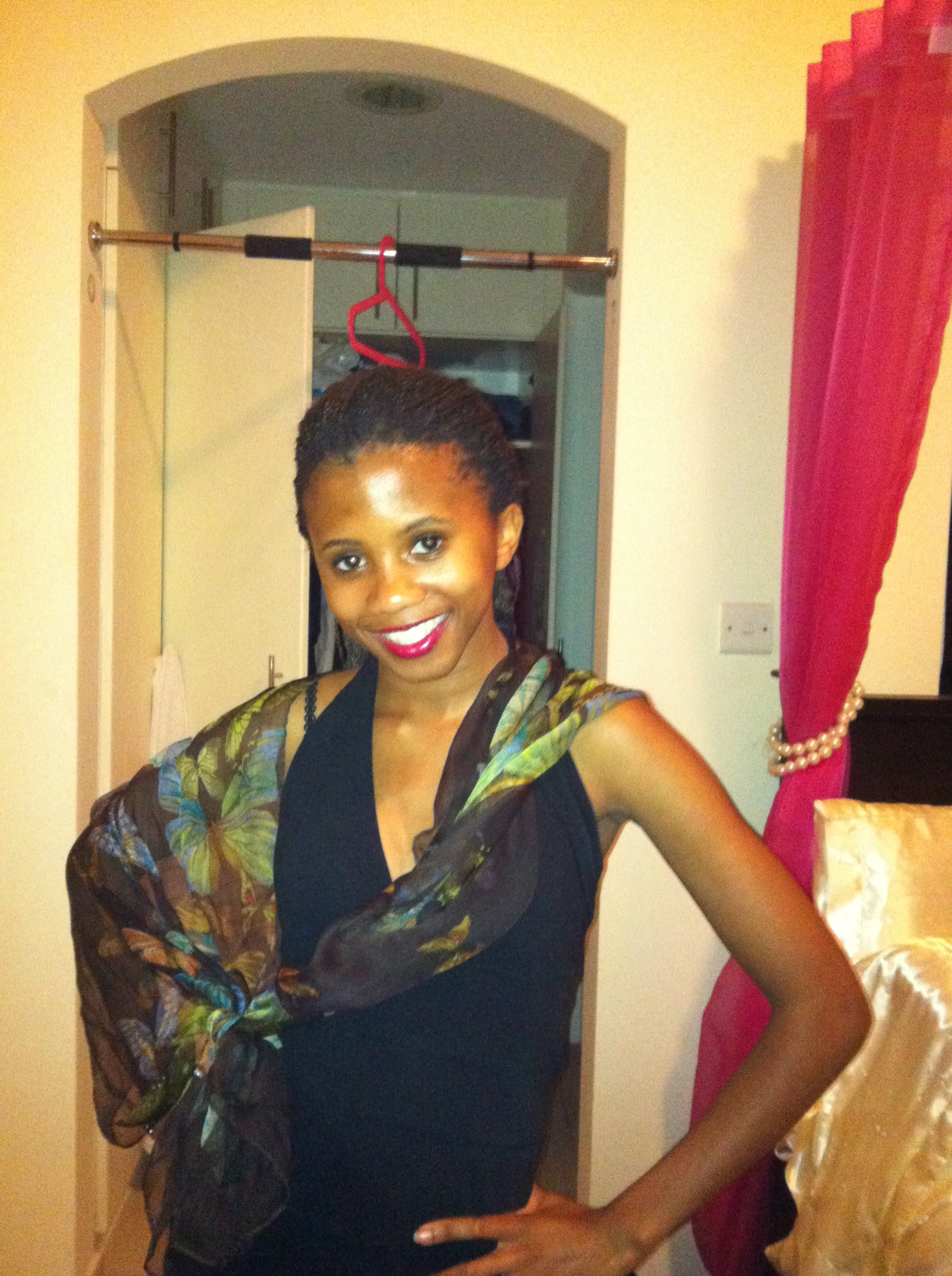 I decided on a chic look that included a simple LBD, with a bold red lip. The silk scarf I added last minute and it was borrowed from a friend.